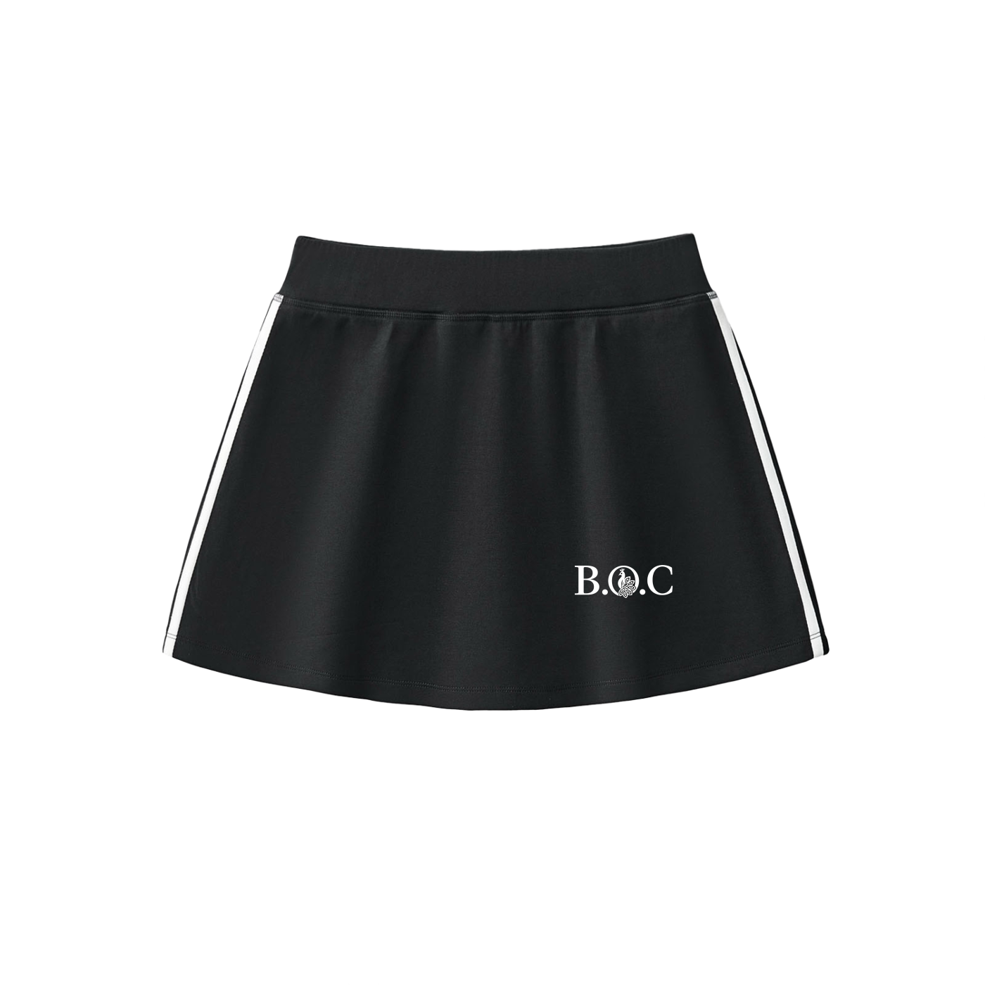 The cropped tee offers a sleek, flattering fit that highlights effortless style, while the skirt brings an athletic yet chic energy with its clean silhouette and subtle side detailing. Together, they create a versatile look—whether styled casually with sneakers for the day or elevated for night outings.