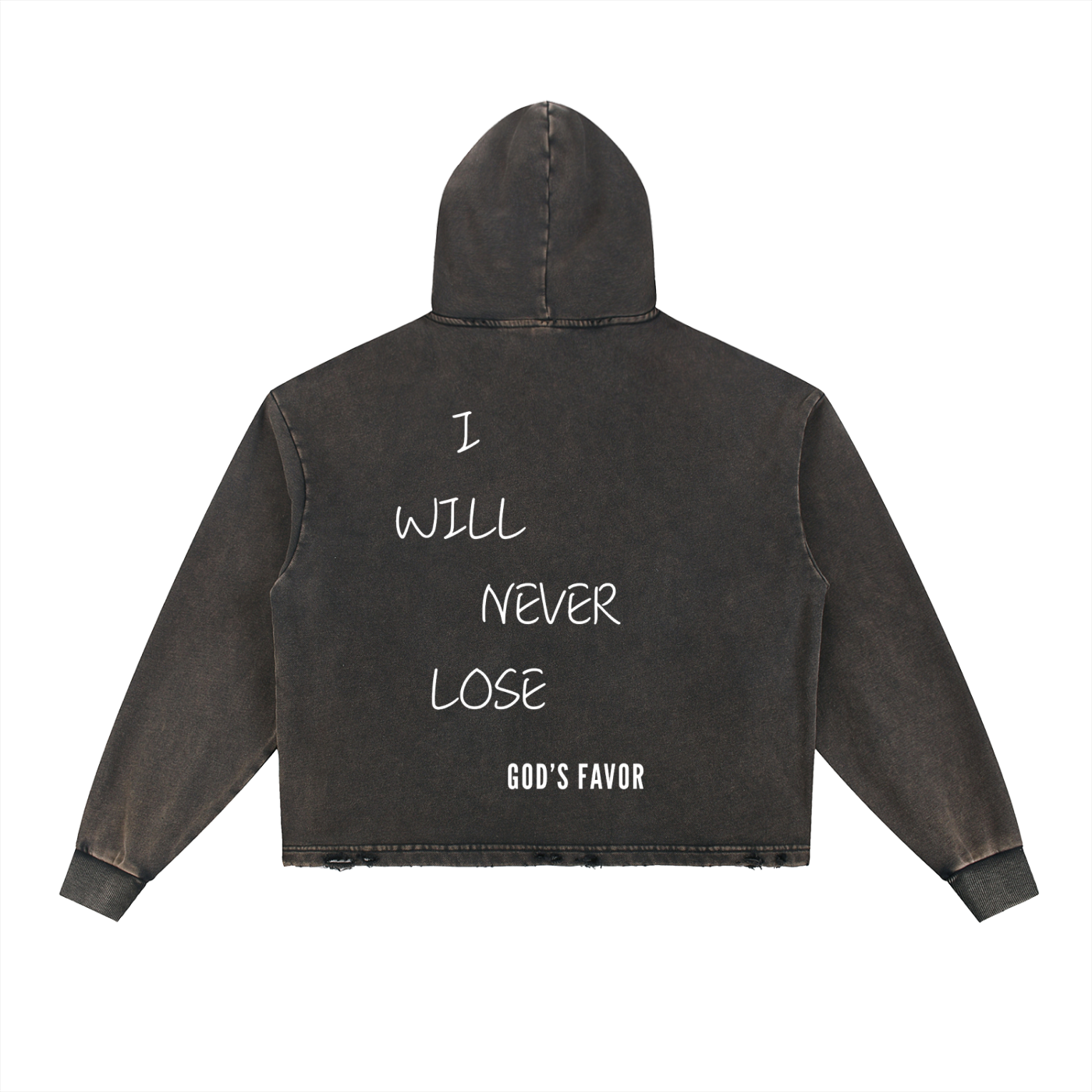 This piece is more than apparel—it’s armor for visionaries, creators, and believers who know they walk with favor and refuse to accept defeat. Designed with a cropped raw hem and premium heavyweight cotton, it merges streetwear aesthetic with spiritual conviction.